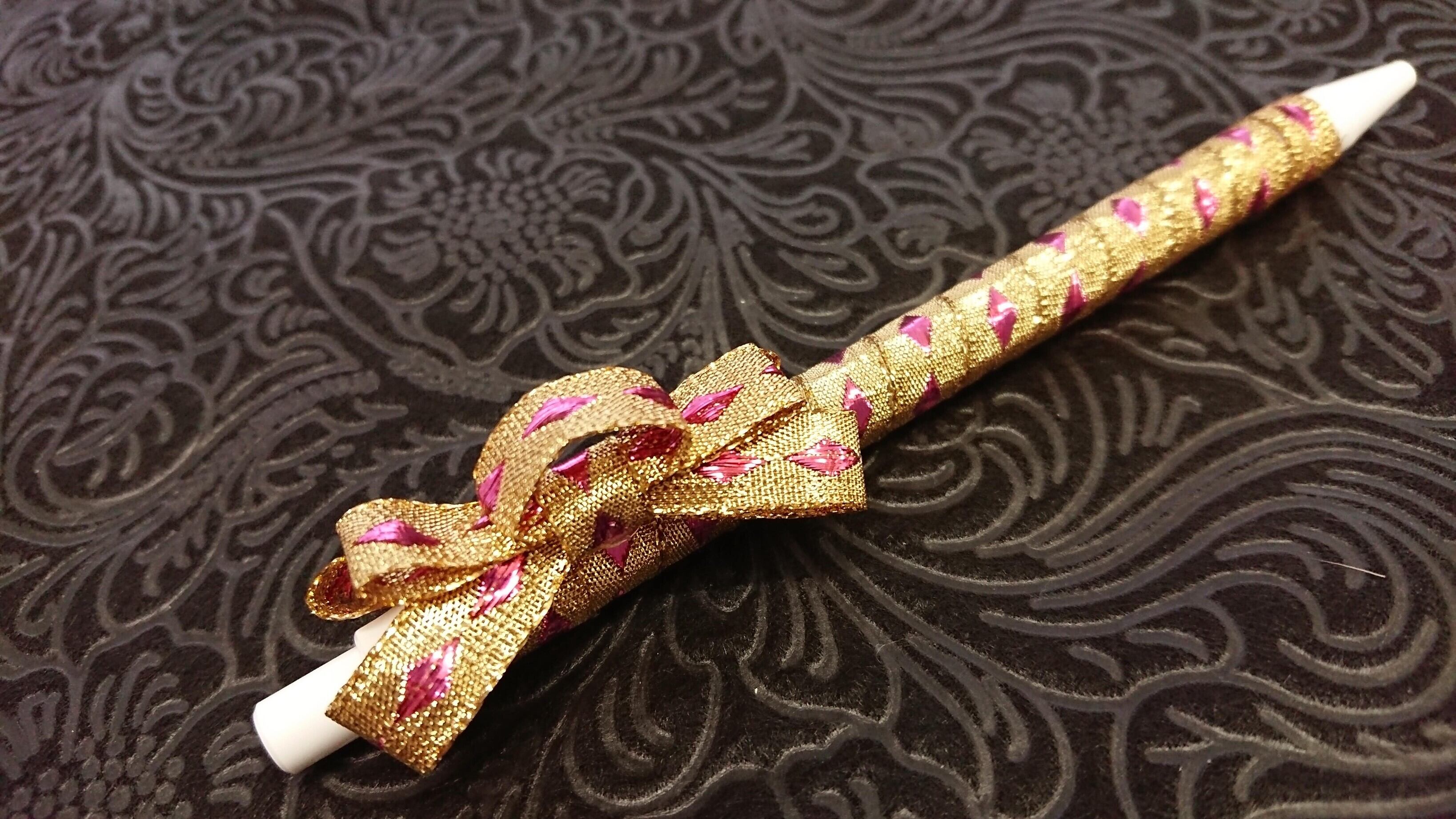 このリボンをペンに巻きたい!