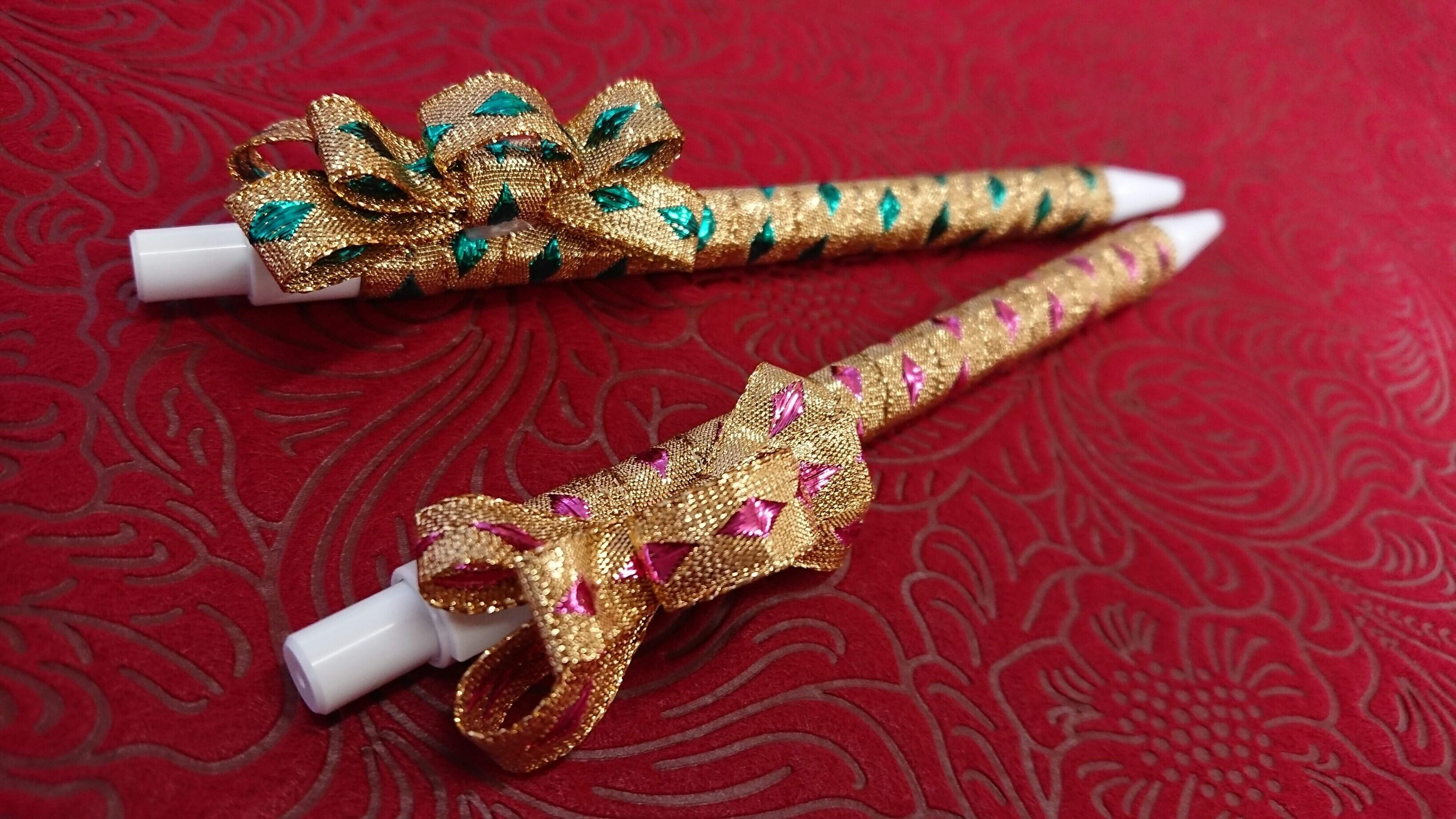 無機質なボールペンにリボンを巻きました。